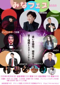 多様な背景を持つアーティストたちの音楽・ダンス・歌!国籍・人種・宗教・文化・セクシュアリティなどの あらゆる違いを超えて「みんな同じ人間だね」を目的としたライブイベント。